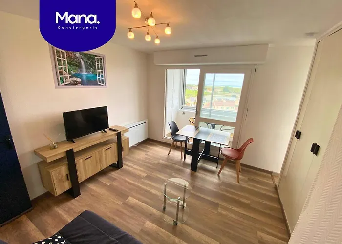 Das 21 m^2 große Ancre - Vue Sur Mer - Port Courseulles-Sur-Mer ist mit einem Sofa möbliert und bietet moderne Ausstattung wie einen Flachbildfernseher mit Satellitenkanälen. Dieses Apartment hat 1 Schlafzimmer. Diese Unterkunft verfügt außerdem über 1 Badezimmer. Außerdem gibt es hier eine getrennte Toilette.